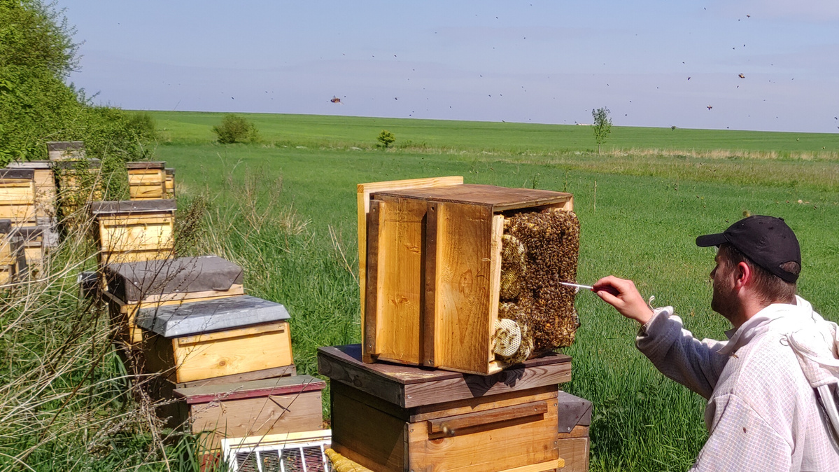 Den ersten Honig habe ich geschleudert. Raps, von 20 bis 25 Völkern. Etwa 500 Kilo hat das ergeben.