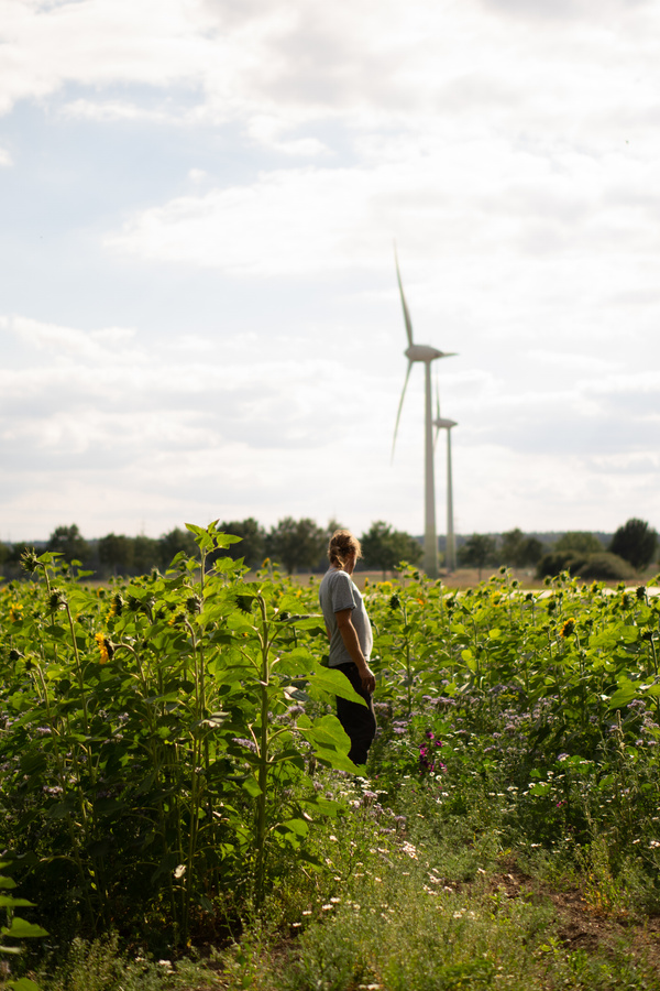 Übrigens finden sich zwischen den Kulturen immer wieder Blumenstreifen oder ein Gemüse geht in die Blüte. Ein wahres Fest für Biene & Co, an die hier auch gedacht wird. Ein Blühstreifen allein ist nicht genug.