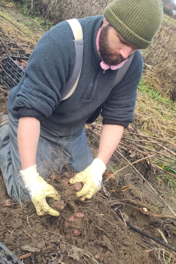 Topinambur Ernte auf dem Acker von Kolja Gärtnerhof Wendengarten