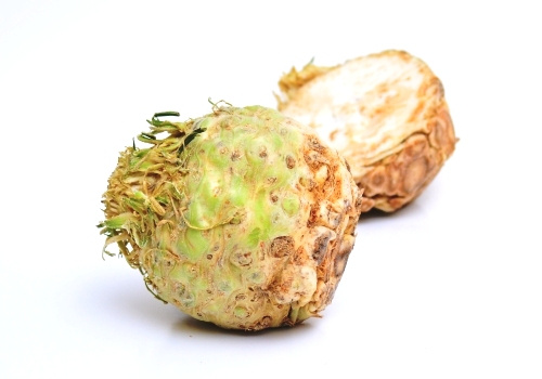 1. Sellerieknolle schälen und in Würfel schneiden, die Selleriewürfel in Ghee anbräunen. Mit ca. 1 Liter Gemüsebrühe auffüllen und köcheln lassen, bis diese weich sind.
