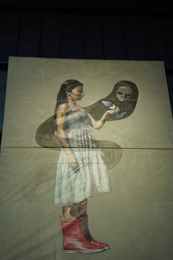 Ausstellungsobjekt Street Art Museum Amsterdam Porträt Mädchen und der tod