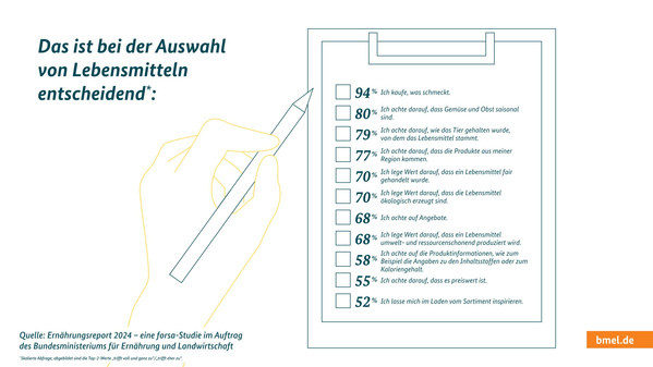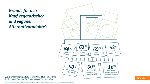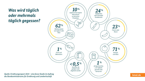 Seid ihr auch so Fans von Zahlen und Statistiken? Dann haben wir hier eine Auswahl von Infografiken füre euch, die wichtige Ergebnisse des BMEL-Ernährungsreports 2024 auf den Punkt bringen...