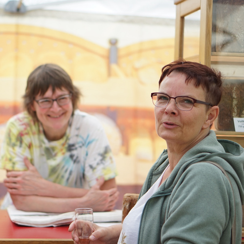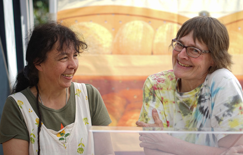 Haben sich schon richtig lange nicht mehr gesehen: Dietlind Kulow vom Biolandhof Wiersdorf und Karin, die Biobäckerin aus Apenburg. So treffen sich bei uns auch die Bio-Held*innen untereinander!