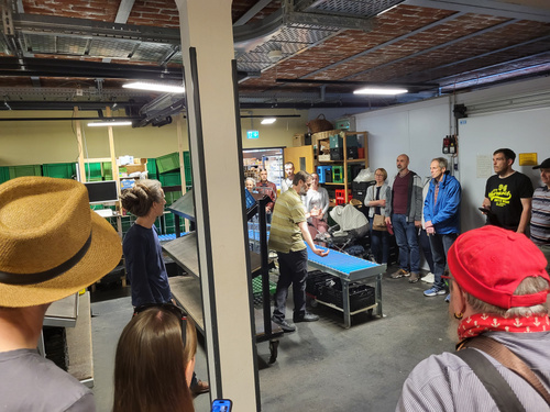 Ein "Muss" für unsere Biokistlers: Packstellenführung mit Felix und Dirk. Von diesem Band rollt die fertige Kiste...
