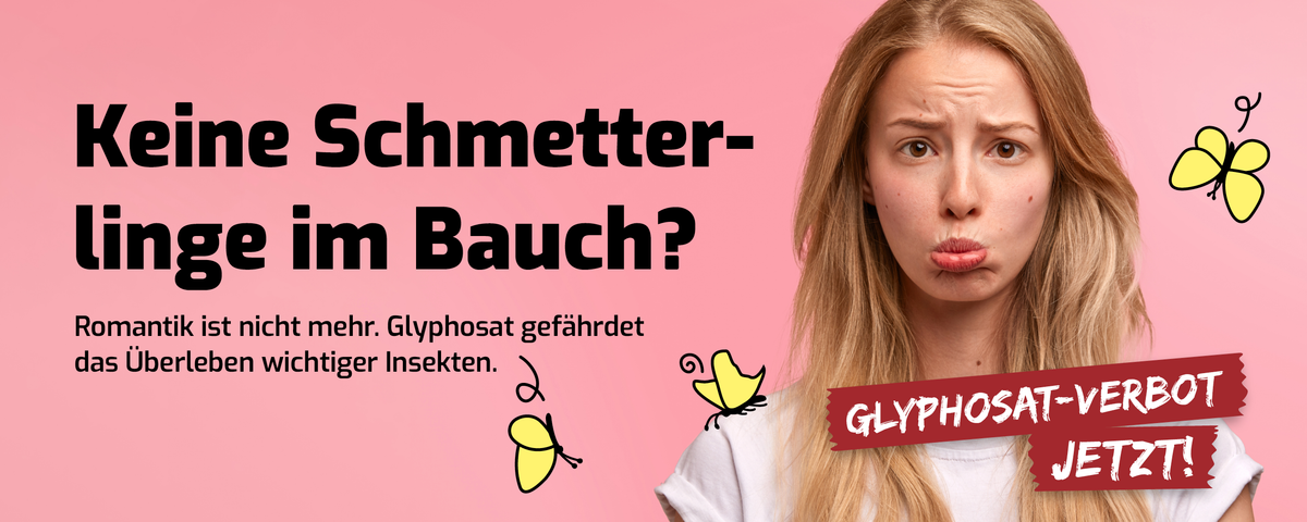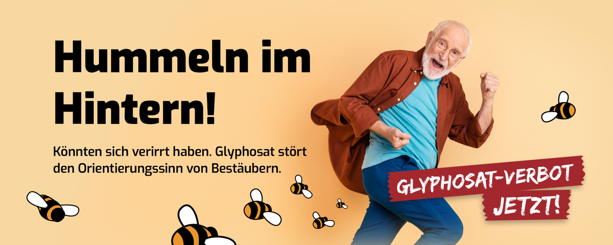 Glyphosat hat massive Auswirkungen auf Umwelt und Artenvielfalt. Die Studie zur Pestizidbelastung der Luft zeigt, dass sich Glyphosat über die Luft in ganz Deutschland verbreitet. So gelangt es auch in Städte und Naturschutzgebiete – weit abseits von Äckern. Das Herbizid belastet unsere Böden und schädigt dort unter anderem die für die Bodengesundheit wichtigen Regenwürmer, wie eine Studie des österreichischen Forschungsteams BOKU zeigt. Und auch für unsere Gewässer ist Glyphosat eine Gefahr. Denn laut der Europäischen Chemikalienagentur (ECHA) ist es als „giftig für Wasserlebewesen“ eingestuft. Besonders Amphibien reagieren äußerst sensibel auf glyphosathaltige Pestizide: Es stört ihre embryonale Entwicklung und gefährdet so das Überleben von Kaulquappen. Indirekt belastet das Unkrautvernichtungsmittel ebenfalls die biologische Vielfalt, denn als Totalherbizid tötet Glyphosat flächendeckend alle Wildpflanzen ab, die auf dem Acker wachsen. So gefährdet es nicht nur die pflanzliche Vielfalt, sondern auch die der Tiere, die an diese Ackerlebensräume gebunden sind – insbesondere Insekten und Vögel. Zahlreiche Bestäuber und Insekten schädigt Glyphosat zudem auch direkt. Eine aktuelle Studie zeigt, dass glyphosathaltige Pestizide massive Auswirkungen auf Insekten haben, wenn diese das Ackergift über die Nahrung aufnehmen. Zudem beweisen zahlreiche Studien die schädlichen Auswirkungen von Glyphosat auf Bienen, welche in einem aktuellen Bericht von PAN Europe zusammengefasst werden.