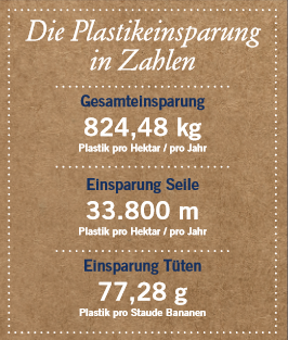 An der Verpackungs-Station werden beschädigte oder für den Export ungeeignete Früchte aussortiert. Die Bananen werden in Wasserbecken gereinigt und in sogenannten Begasungsöfen desinfiziert. Die perforierten Bananenkisten ermöglichen eine Luftzirkulation beim Transport. Die ebenfalls perforierten Kunststoff-Folien dienen zum Schutz der Atmosphäre. Es dürfen keine gelben (reifen) Bananen verpackt werden, da diese durch Ethylenausscheidung die anderen grünen Bananen während des Transportes zur vorzeitigen Reifung bringen würden. Auch hier wird an der Umsetzung gearbeitet, Folie zukünftig gegen Papier ersetzen zu können.