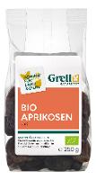 Süße Bio Aprikosen. Pur oder als Zutat in Müsli, zum Backen und Kochen, in Saucen oder exotischen Gerichten. Grell Naturkost Aprikosen sind sonnengetrocknet. Sie erhalten so ihre dunkle Farbe und den fruchtigen Geschmack.