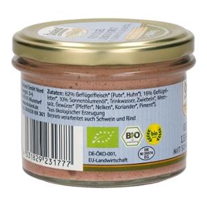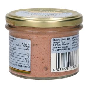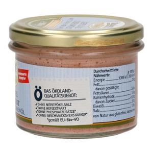 Die Ökoland Geflügel-Leberwurst ist eine Wurst-Spezialität aus reinem hochwertigem Bio-Geflügelfleisch und Bio-Geflügelleber in Gourmet-Qualität. Mit Sonnenblumenöl erhält sie die besonders feine und streichfähige Konsistenz. Die traditionellen Gewürze sorgen gemäß Hausmacher Art für den herzhaft-leckeren Geschmack. Im praktischen Zylinderglas leicht entnehmbar.