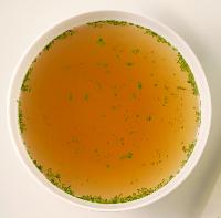 Wasser, Gemüse* (Lauch*, Karotten*, Tomaten*, Petersilienwurzel*, Champignons*, Zwiebeln*), Steinsalz, Liebstöckel*, Nelken*, Lorbeer*.