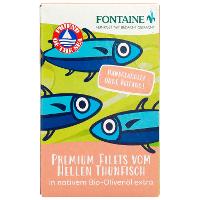 Fontaine Heller Thunfisch wird nach den Richtlinien der Nachhaltigkeit einzeln mit der Angelrute aus dem Wasser gezogen. Nach dem Handangelfang folgen die verantwortungsvolle Verarbeitung und die Verfeinerung mit besten Bio-Zutaten. Diese Vollkonserve enthält neben dem Thunfisch ausschließlich Meersalz  und mildes spanisches Bio-Olivenöl extra vergine.