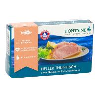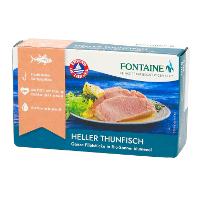 Fontaine Heller Thunfisch wird nach den Richtlinien der Nachhaltigkeit einzeln mit der Angelrute aus dem Wasser gezogen. Nach dem Handangelfang folgen die verantwortungsvolle Verarbeitung und die Verfeinerung mit besten Bio-Zutaten. Diese Vollkonserve enthält neben dem Thunfisch ausschließlich Meersalz und kalt gepresstes Bio-Sonnenblumenöl aus deutscher Ölmühle.