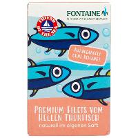 Fontaine Heller Thunfisch wird nach den Richtlinien der Nachhaltigkeit einzeln mit der Angelrute aus dem Wasser gezogen. Nach dem Handangelfang folgen die verantwortungsvolle Verarbeitung und die Verfeinerung mit besten Bio-Zutaten. Diese Vollkonserve enthält neben dem Thunfisch ausschließlich Wasser und Meersalz.
