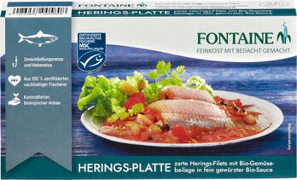 Für den Atlantischen Hering ist der Norden des FAO Fanggebiets 27 ein idealer Lebensraum. Die dort praktizierte Fischerei mit Ringwadennetzen und pelagischen Schleppnetzen ist vom Marine Stewardship Council (MSC™) als nachhaltig anerkannt. Fontaine Heringsprodukte zeichnen sich durch eine verantwortungsvolle Verarbeitung und Verfeinerung mit besten Bio-Zutaten aus.