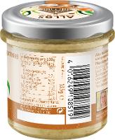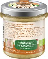 Champignons* (48%), Sonnenblumenöl*, Sonnenblumenkerne*,Lauch* (6%), Zwiebeln* geröstet (4%), Zwiebeln* (4%), Agavendicksaft*, Zwiebelpulver*, Zitronensaftkonzentrat*, Kartoffelstärke*, Meersalz, getrocknete Steinpilze* (1%), Schnittlauch*,Basilikum* (0,5%), Muskatnuss*, weißer Pfeffer*, Verdickungsmittel: Johannisbrotkernmehl*