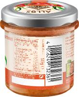 Tomaten* (50%), Sonnenblumenkerne*, rote Paprika* (10%), Tomatenmark*( 8%), Agavendicksaft*, natives Olivenöl* extra, Kirschtomaten*( 4%), Kartoffelstärke*, Meersalz, Zitronensaftkonzentrat*, Chilipulver* (0,5%), Basilikum*, Oregano*, Knoblauch*, Paprikapulver*, Verdickungsmittel:Johannisbrotkernmehl*.