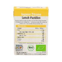 Geliermittel: Gummi arabicum*, Zucker*, Glukosesirup*, Bienenhonig* (7,5%), Isländisch Moos Extrakt* (1,4%), Zitronensaftkonzentrat* (0,8%), Zitronenöl* (0,5%), Ingweröl* (0,3%), Vanilleextrakt*. Trennmittel: Carnaubawachs*