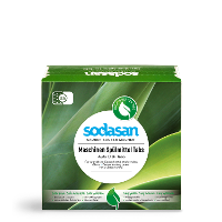 Fu-r brillante Spu-lergebnisse ohne Kalkflecken und zur Schonung der Maschine sodasan Klarspu-ler und Regeneriersalz verwenden. Solltest Du weiße Kalkablagerungen auf Geschirr oder Gläsern beobachten, stell den Wasserenthärter in der Spülmaschine auf einen höheren Wasserhärtebereich ein. (s. Biedienungsanleitung)Um die Umwelt zu schützen, nimm Ihre Geschirrspülmaschine nur in Betrieb, wenn sie voll ist. Bevorzugt Waschgänge bei geringer Temperatur wählen und die Dosieranleitung befolgen.-----Folie entfernen und einen Geschirrspültab in den Besteckkorb oder in das Spülmittelfach legen. Bei Geschirr mit starker, fetthaltiger Verschmutzung kann die Dosierung auf 2 Tabs erhöht werden. Um Kalkrückstände zu vermeiden, achten Sie auf die regelmäßige Zugabe von Regeneriersalz und Klarspüler. Tipp: Sollten trotz Zugabe des Regeneriersalzes Kalkrückstände auf dem Geschirr bleiben, stelle die Wasserhärte in Deiner Spülmaschine auf den nächsthöheren Bereich ein.Das Produkt bitte nicht anwenden für Bleikristall, handbemaltes Porzellan und Silberbesteck.