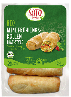 Füllung: Weißkohl* (20%), Mungbohnensprossen* (12%), Karotten* (9%), Tofu* (Wasser, SOJABOHNEN*, Festigungsmittel: Nigari), roter Paprika* (4%),