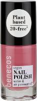 benecos 20-FREE Nagellacke - preiswert & vegan. Die pflanzenbasierte Formulierung besteht zu 80% aus Inhaltsstoffen natürlichen Ursprungs und verzichtet gleichzeitig auf mindestens 20 davon, die bisher als umstritten gelten. On top sind die Nail Polishes mit pflegendem Apfelsamenöl (Upcycling-Produkt) und Biotin angereichert sowie wasser- und luftdurchlässig.