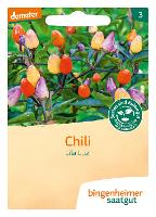 Dekorative, sehr kleinfrüchtige, reich fruchtende Chili mit violetten Blättern. Die sehr scharfen Früchte reifen von Violett über Gelb und Orange auf Rot ab. Besonders geeignet als attraktive Topf- oder Kübelpflanze. Auch für den Anbau im Freiland geeignet. "TIPP": Für Salsas, Saucen und Dips. Die Chilis lassen sich sehr gut trocknen und sind dann bestens für die Gewürzmühle geeignet.