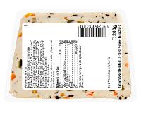 Hefeextrakt*, Sonnenblumenöl*, Lauch*, Karotten*, SELLERIE*, Macis*, Muskatnuss*, Petersilie*),Pfeffer schwarz*, Macis*, Gerinnungsmittel: Magnesiumchlorid, Calciumsulfat.