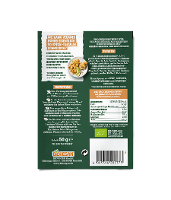 83% Kichererbsenmehl*, 4,8% geräucherte Shiitakepilzstücke* (Shiitakepilze*, Rauch), Salz, Inulin*, Flohsamenschalen* gemahlen, geräuchertes Salz (Salz, Rauch), Leinsamenpulver* entölt, geräuchertes Paprikapulver* (Paprika*, Rauch), Knoblauch*, Zwiebelpulver*, weißer Pfeffer*, Kurkuma*.