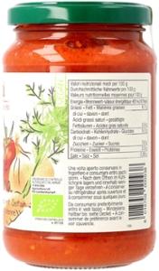 Tomaten* 68%, Zwiebeln* 9,5%, Karotten* 7,2%, SEITAN* (WEIZENGLUTEN*, WEIZENMEHL*, SOJA*, Wasser, Meersalz, Reis) 6,9%, natives Olivenöl extra*, Meersalz, Balsamessig* aus Modena (Weinessig*, konzentrierter Traubenmost*), Reismehl*.
