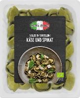 Teig (70%): VOLLKORN-HARTWEIZENGRIESS* (70%), Wasser, Spinatpulver* (2%).Füllung (30%): SPEISEQUARK* (45%) (Magerstufe), Kartoffelflocken*,