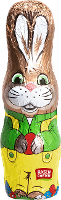 Osterhase aus feinster Bio-Vollmilchschokolade, im kindgerecht gestaltetem Stanniolpapier verpackt