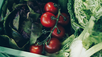 Kräuter (z.B. Thymian, Estragon, Basilikum, Minze, Rosmarin) waschen und, bis auf etwas zum Garnieren, hacken und zu den Tomaten geben. Tomaten-Mix gleichmäßig in der Tarteform verteilen.