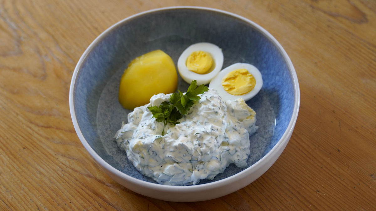 Tipp: Am besten schmeckt die Soße zu Pellkartoffeln und Eiern – ganz klassisch.