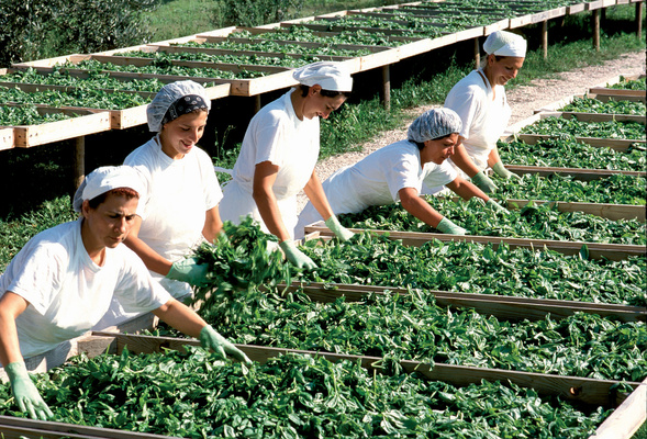 Basilikum trocknen in den 1980er Jahren bei La Selva.