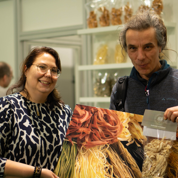 Zu Besuch auf der BIOFACH-Messe haben wir unseren Augen nicht getraut: Die kennen wir doch, die Nudeln? Schweren Herzens und mit einer Träne im Auge haben wir uns im letzten Frühsommer '22 von der Nudelwerkstatt Hilmsen verabschieden müssen, Angelika Wilke hat es nach Magdeburg verschlagen. Eigentlich wollte sie gerne ihre Nudelwerkstatt in liebevolle Hände übergeben, das sollte erstmal nicht sein.
